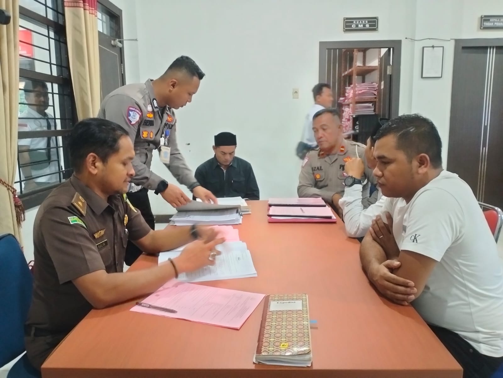 Keizalinnews.Online|Lhokseumawe-: Personel Unit Gakkum Polantas Polres Lhokseumawe menyerahkan tahap II perkara kecelakaan lalu lintas dengan tersangka, AN ( 34 thn) warga Desa Gunung Suku, Aceh Tengah. Serah terima ini berlangsung di Kantor Kejaksaan Negeri Aceh Utara, yang terletak di Lhoksukon, Kabupaten Aceh Utara, Rabu (30/10/2024).