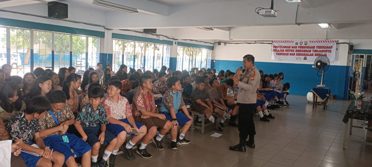 KeizalinNews.Online Jakarta — Polsek Koja melalui Kanit Bimas AKP Slamet Rajiman bersama Bhabinkamtibmas Kelurahan Tugu Utara Aiptu Pardi Wiyanto melaksanakan program Police Go To School di SMP Strada Jl. Bhayangkara RW 017 Kelurahan Tugu Utara, Kecamatan Koja, Jakarta Utara, Jumat (01/11/2024).