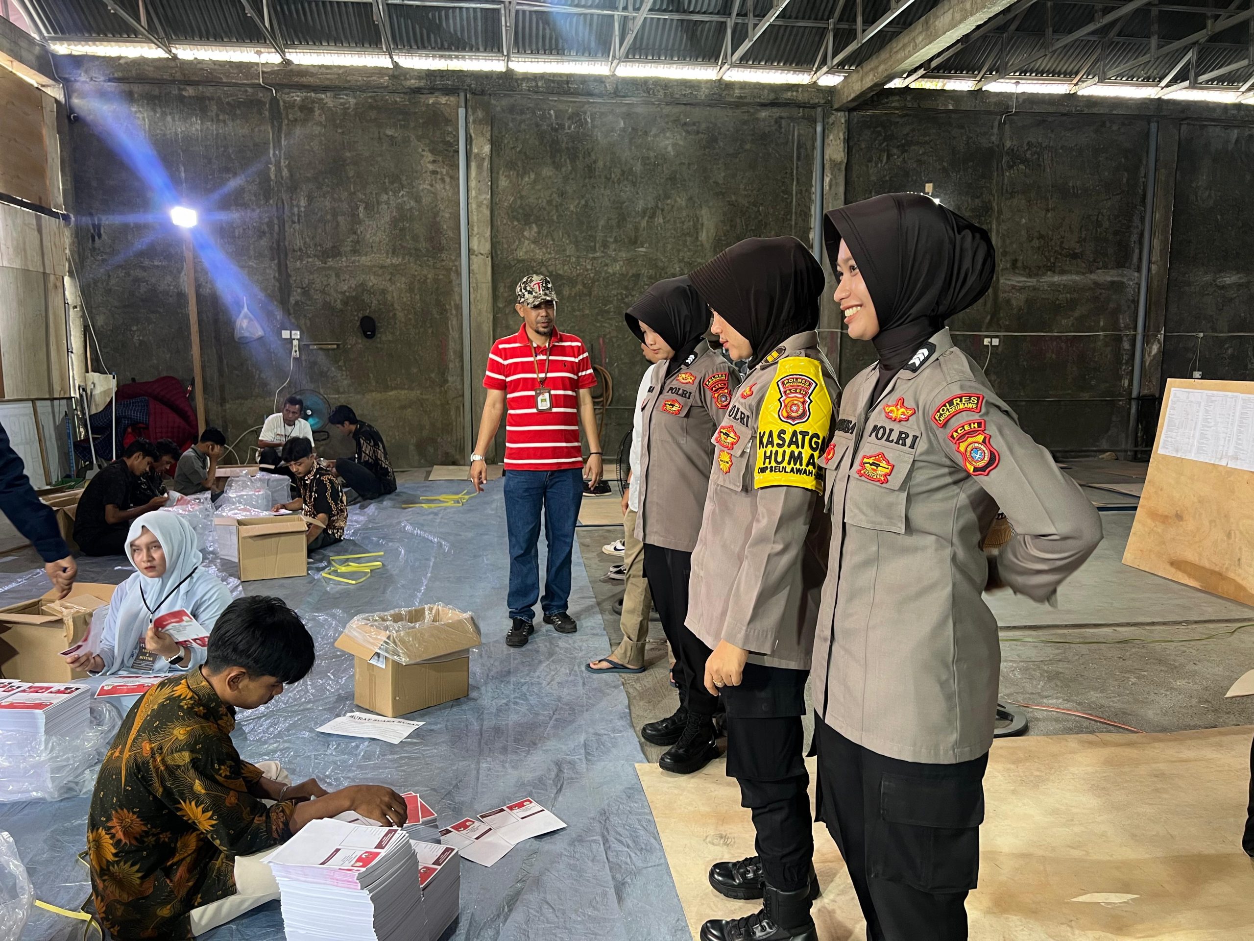 “Pengamanan ini bertujuan untuk menjamin setiap tahapan proses pemilu dapat berjalan aman dan lancar. Kami juga ingin memberi rasa aman kepada masyarakat bahwa proses penyortiran hingga pelipatan kertas suara berada di bawah pengawasan ketat dari pihak kepolisian,” ungkap Kompol Muin.