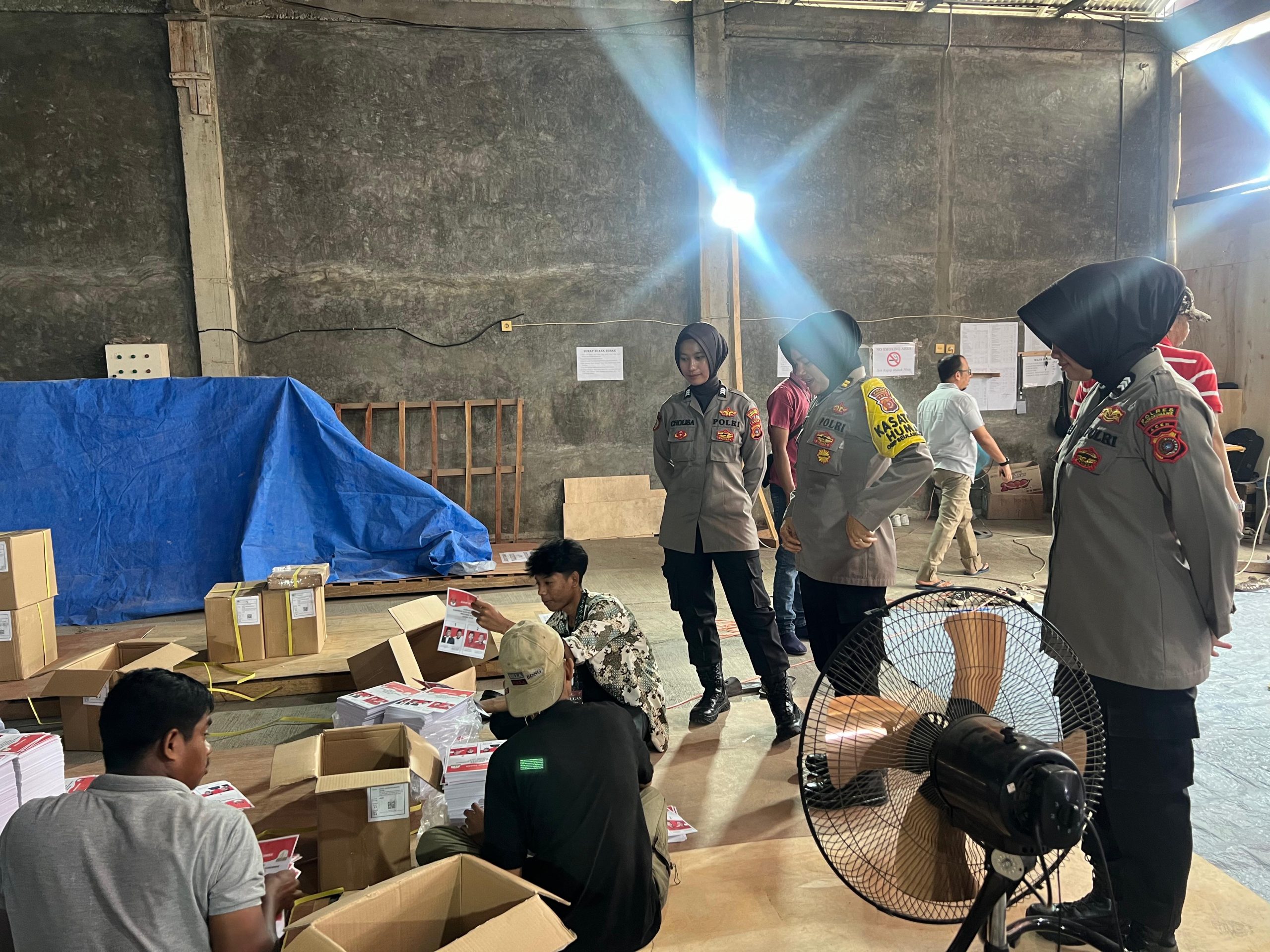 Keizalinnews.Online|Lhokseumawe-: Sebanyak 15 personel dari Polres Lhokseumawe dikerahkan untuk mengamankan proses penyortiran dan pelipatan kertas suara yang berlangsung di Gudang Logistik Komisi Independen Pemilihan (KIP) Lhokseumawe. Pengamanan ini dimulai sejak 31 Oktober hingga 10 November 2024 guna memastikan seluruh tahapan berjalan lancar dan aman.