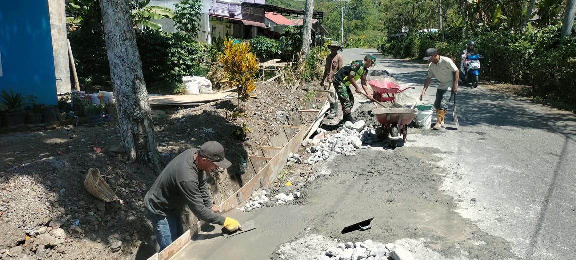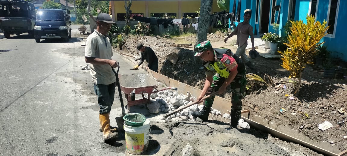 kegiatan gotong royong memperbaiki badan jalan yg rusak akibat derasnya air hujan yg mengakibatkan meluapnya parit hingga badan jalan sehingga jalan terkikis oleh air. Babinsa sertu hairuddin mengatakan bahwa kegiatan ini merupakan wujud nyata sinergi antara TNI dan masyarakat dalam menjaga dan membangun fasilitas umum desa.