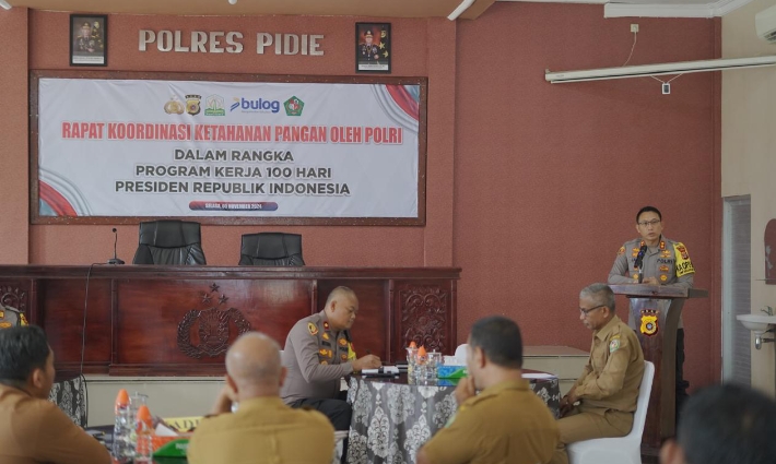 Acara yang diselenggarakan di Aula Wira Satya Polres Pidie ini membahas persiapan dan langkah-langkah yang diperlukan untuk mendukung kebijakan ketahanan pangan, khususnya di Kabupaten Pidie