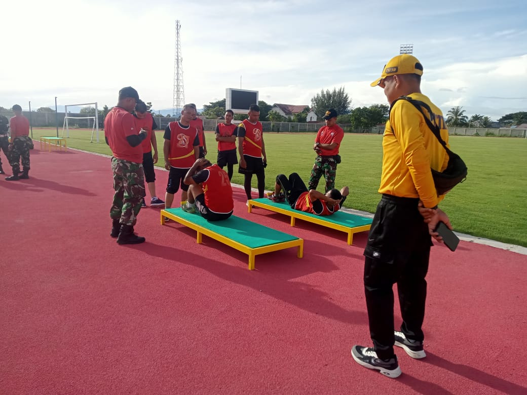 Selain itu, sesi pemanasan juga dilakukan di bawah pengawasan tim jasmani militer Korem 011/Lilawangsa Serka Alfaman Pardede dan serka Yoka Saputra untuk meminimalisir risiko cedera dan kelancaran kegiatan.