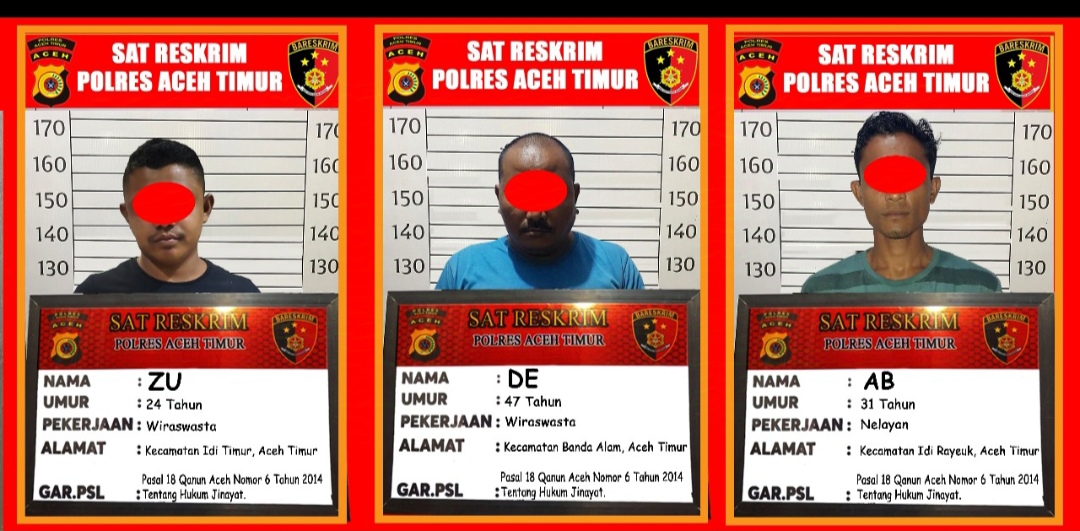 Disebutkan pengungkapan pertama pada tanggal 6 Nopember di wilayah Kecamatan Idi Timur dengan 1 (satu) orang pelaku yang diamankan berinisial ZA, 24 tahun, warga Kecamatan Idi Timur. Selanjutnya pengungkapan kedua pada tanggal 8 Nopember di wilayah Kecamatan Idi Rayeuk dengan 2 (dua) orang pelaku berinisial AB, 31 tahun, warga Kecamatan Idi Rayeuk dan DE 47, warga Kecamatan Banda Alam.