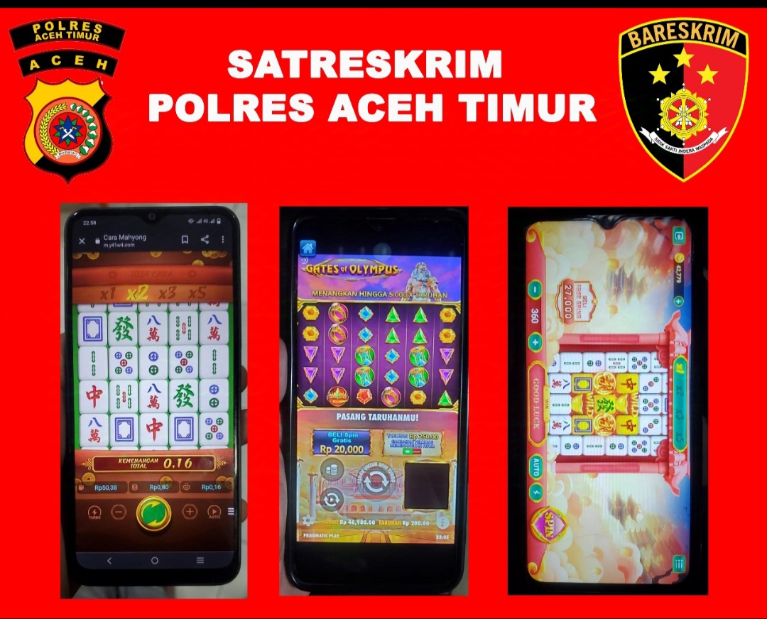 “Bersama ketiga pelaku kami juga mengamankan sejumlah barang bukti yang berkaitan dengan tindak pidana judi online, yakni; 3 (tiga) unit handphone. Sedangkan alat bukti yang kami sita diantaranya; Dokumentasi akun judi online pada aplikasi judi online; dokumentasi permainan jarimah maisir/judi online Mahjong Ways 2 dan dokumentasi transaksi pengiriman saldo untuk deposit masing masing para pelaku,” sebut Kasat Reskrim Polres Aceh Timur Iptu Adi Wahyu Nurhidayat, S.TrK.,S.I.K.