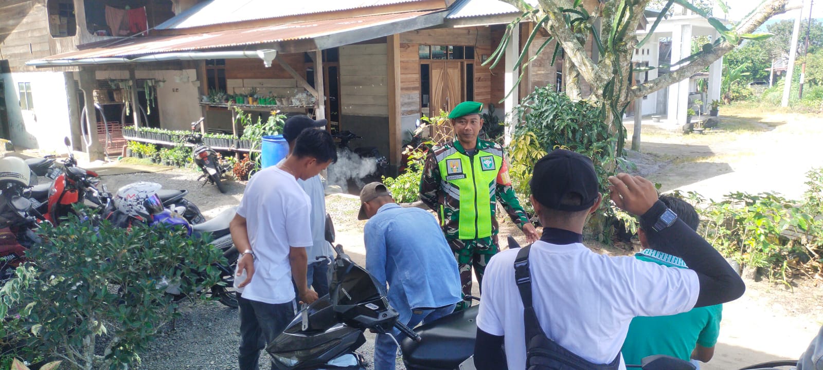 Keizalinnews.Online|Redelong-: Babinsa Koramil 04/Pintu Rime Gayo, Kodim 0119/Bener Meriah, Serka Suharsoyo memberikan himbauan bahaya narkoba dan judi online melalui Komsos di Desa Rata Ara,Kecamatan Pintu Rime Gayo, Kabupaten Bener Meriah, Selasa (12/11/2024).