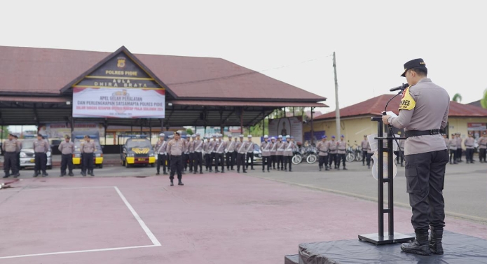 Keizalinnews.com Pidie – Polres Pidie Polda Aceh mengadakan apel kesiapsiagaan Satsamapta yang berlangsung di lapangan apel Polres Pidie. Kegiatan ini bertujuan untuk memastikan kesiapan personel dan peralatan dalam menghadapi pengamanan selama Operasi Mantap Praja Seulawah 2024 berlangsung di Kabupaten Pidie. Jumat, (15/11 2024)