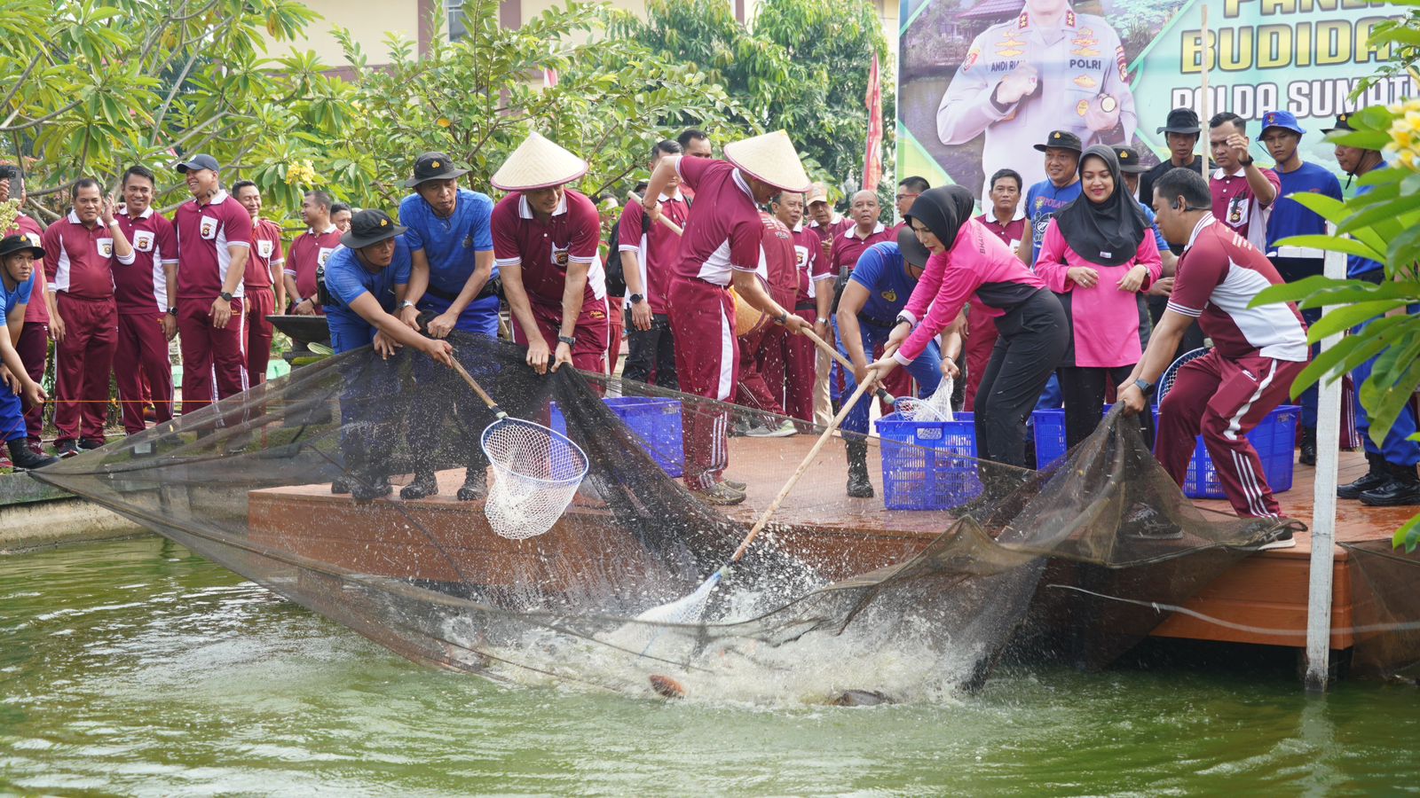 Melalui panen raya ikan di kolam ikan kompleks Pakri, dilanjutkan tebar benih 50.000 bibit ikan. Selain panen ikan, Polda Sumsel juga panen buah mangga, cabai, jeruk kunci. Penanaman berbagai varietas sayur dan buah, serta peternakan 600 ekor bibit ayam kampung jenis unggul.