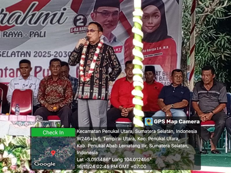 PALI – Kampanye tatap muka dan dialogis calon Gubernur Sumatera Selatan nomor urut 02, Ir. H. Eddy Santana Putra, MT, berlangsung di Desa Tempirai, Kecamatan Penukal Utara, Kabupaten PALI, Sabtu (16/11/2024).