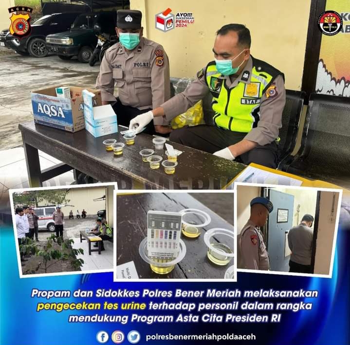 “Ini merupakan bentuk keseriusan Polres Bener Meriah dalam memerangi Narkoba,” kata Kasi Humas Polres Bener Meriah dalam keterangannya terkait pelaksanaan pengecekan urine.