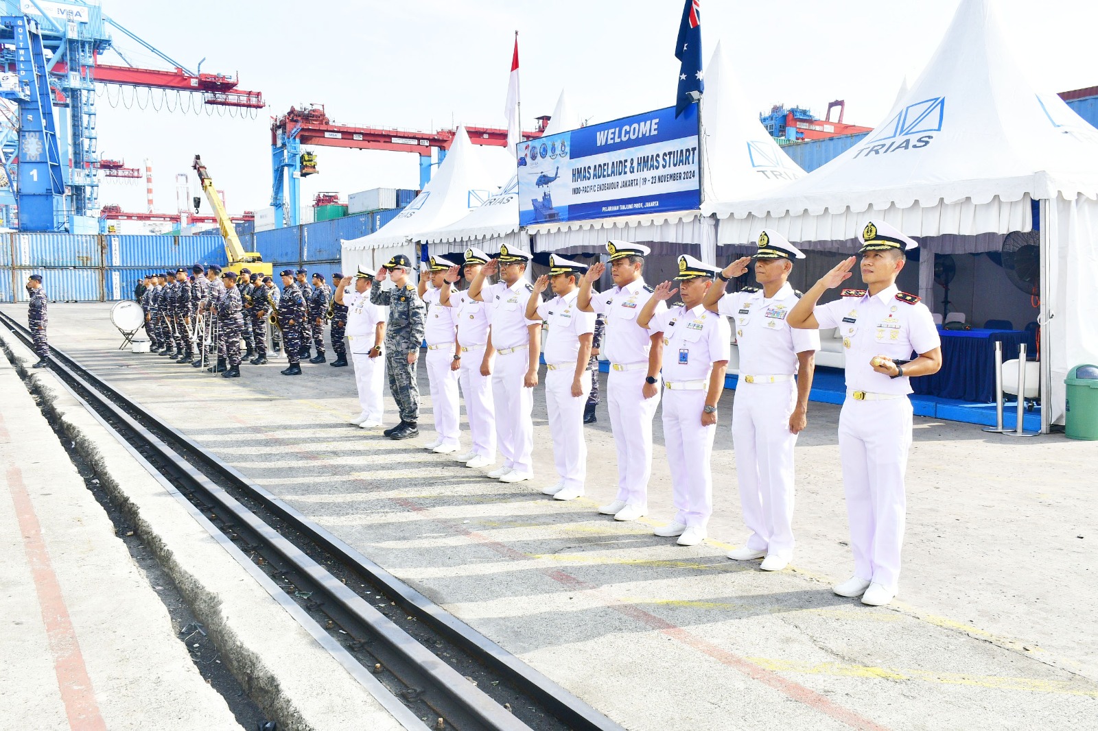 KeizalinNews.Online Jakarta — Komandan Pangkalan Utama TNI Angkatan Laut (Danlantamal) III Jakarta Brigjen TNI (Mar) Harry Indarto, S.E., M.M. diwakili oleh Asisten Operasi (Asops) Danlantamal III Jakarta Kolonel Laut (P) Puryanto melepas keberangkatan Kapal Perang Angkatan Laut Australia His Majesty’s Australian Ship (HMAS) Adelaide (L-01) dengan komandan Captain Troy Duggan dan HMAS Stuart (FFH-153) dengan komandan Commander Warren Bechly bertempat di dermaga 208 pelabuhan Tanjung Priok, Jakarta Utara, Sabtu (23/11/2024).