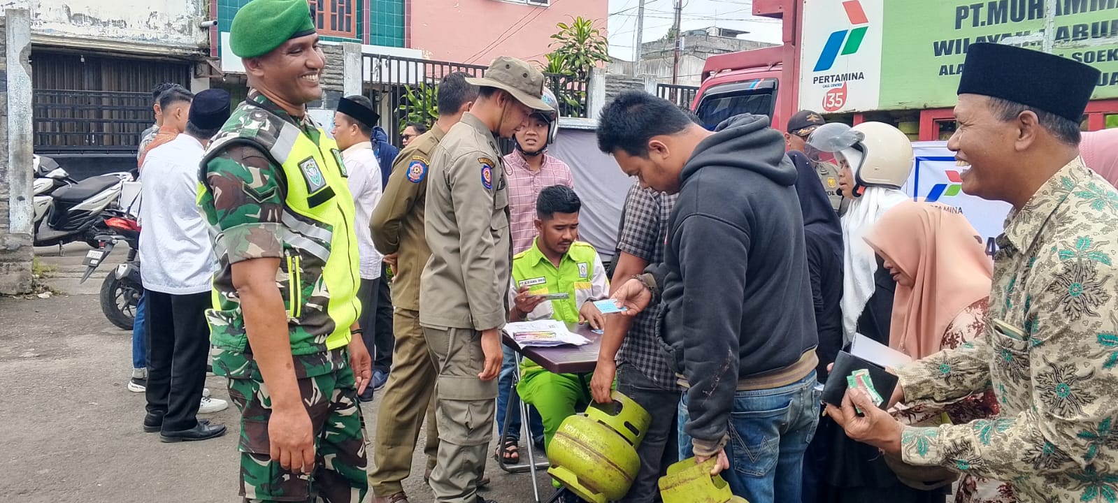 Babinsa melaksanakan pendampingan dalam proses distribusi tabung gas LPG 3 kg, guna memastikan penyaluran berjalan lancar, tepat sasaran, dan sesuai dengan kebutuhan masyarakat prasejahtera.