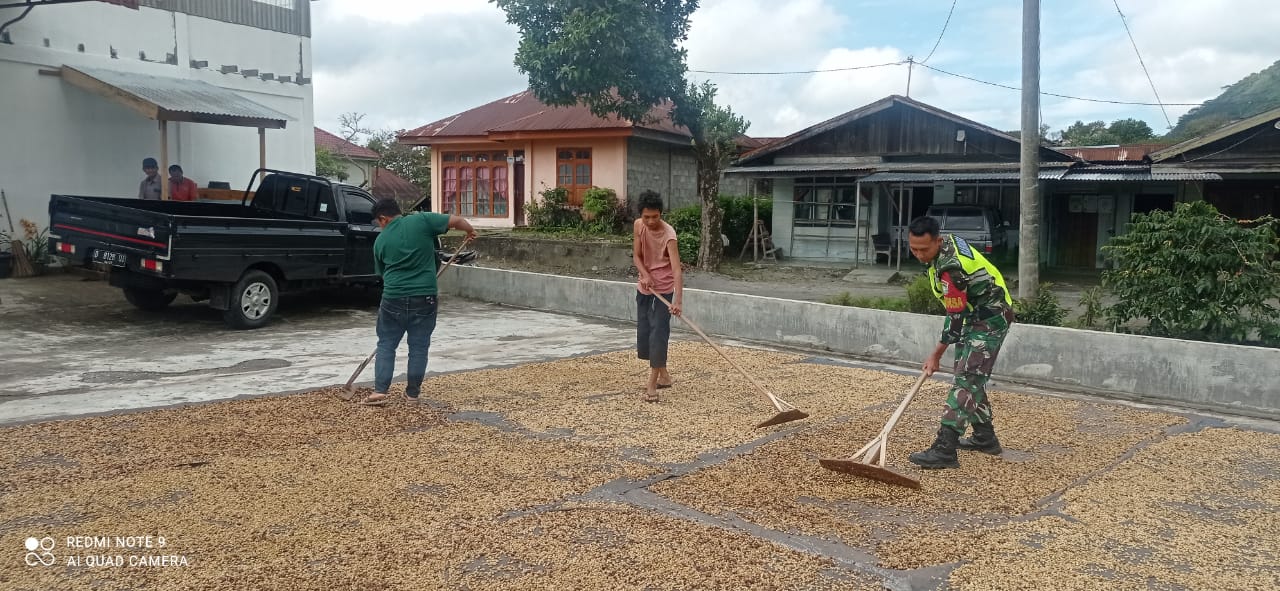 Pendampingan kepada petani tidak hanya sampai selesai di masa panen saja, tetapi masih terus dilakukan sampai penjemuran hasil Kopi pun, Babinsa juga hadir membantu para petani di desa binaan yang mayoritas petani kopi.