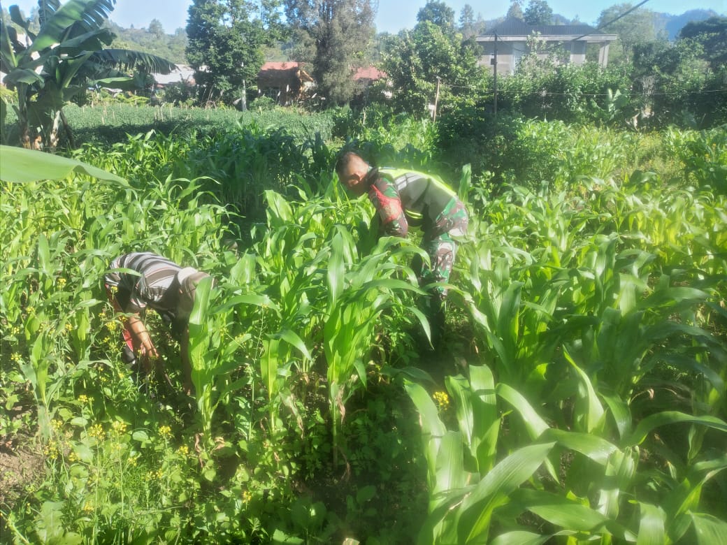 Keizalinnews.Online|Aceh Tengah-: Dalam upaya mendukung ketahanan pangan di wilayah binaannya, Bintara Pembina Desa (Babinsa) koramil 02/Bebesen pos ramil kute panang sertu harjono melaksanakan kegiatan hanpangan di desa pantan jerik kecamatan Kute panang kabupaten Aceh tengah.
