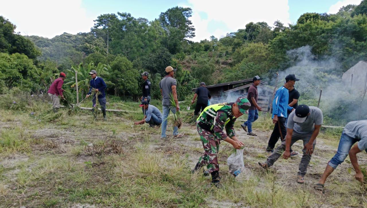 Keizalinnews.Online|Redelong-: Bintara Pembina Desa (Babinsa) Bersama warga Bersihkan Lingkungan dari sampah Non-Organik yang ada di seputaran, tepatnya didesa