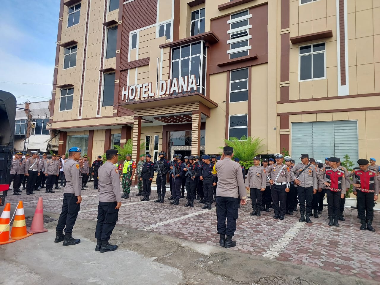 Keizalinnews.Online|Lhokseumawe-: Polres Lhokseumawe menerjunkan ratusan personel untuk mengamankan pelaksanaan rapat pleno rekapitulasi suara Pilkada yang digelar di Hotel Diana, Kota Lhokseumawe, Senin (2/12/2024). Langkah ini dilakukan guna memastikan seluruh tahapan Pilkada berlangsung kondusif dan tertib.