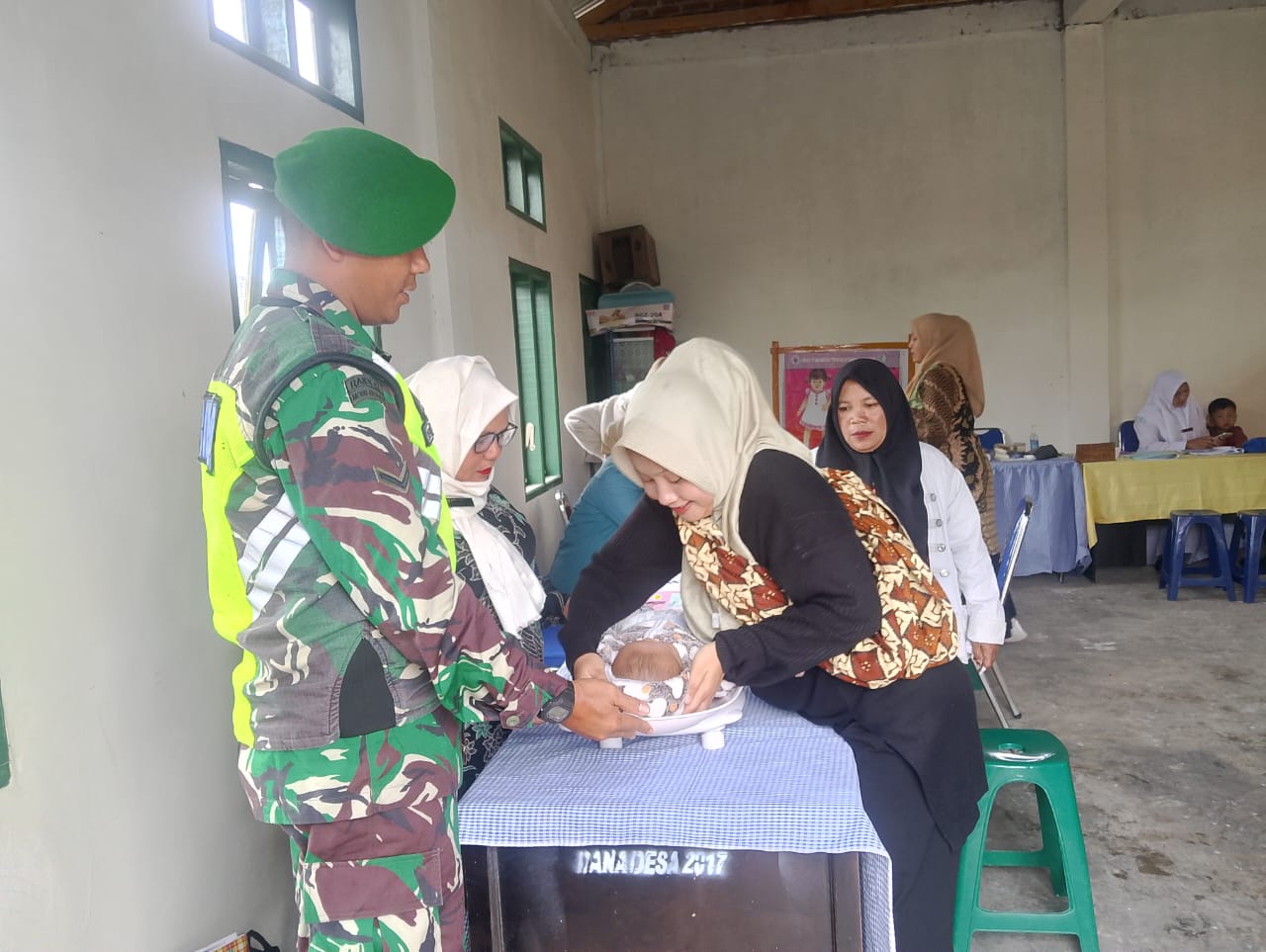 Keizalinnews.Online|Redelong-: Bintara Pembina Desa (Babinsa) Koramil 01/Bandar Kodim 0119/BM Serda Derys Tusan melaksanakan kegiatan pendampingan Pelayanan Posyandu di Desa Blang Jorong, Kecamatan Bandar, Kabupaten Bener Meriah. Selasa (10/12/2024).