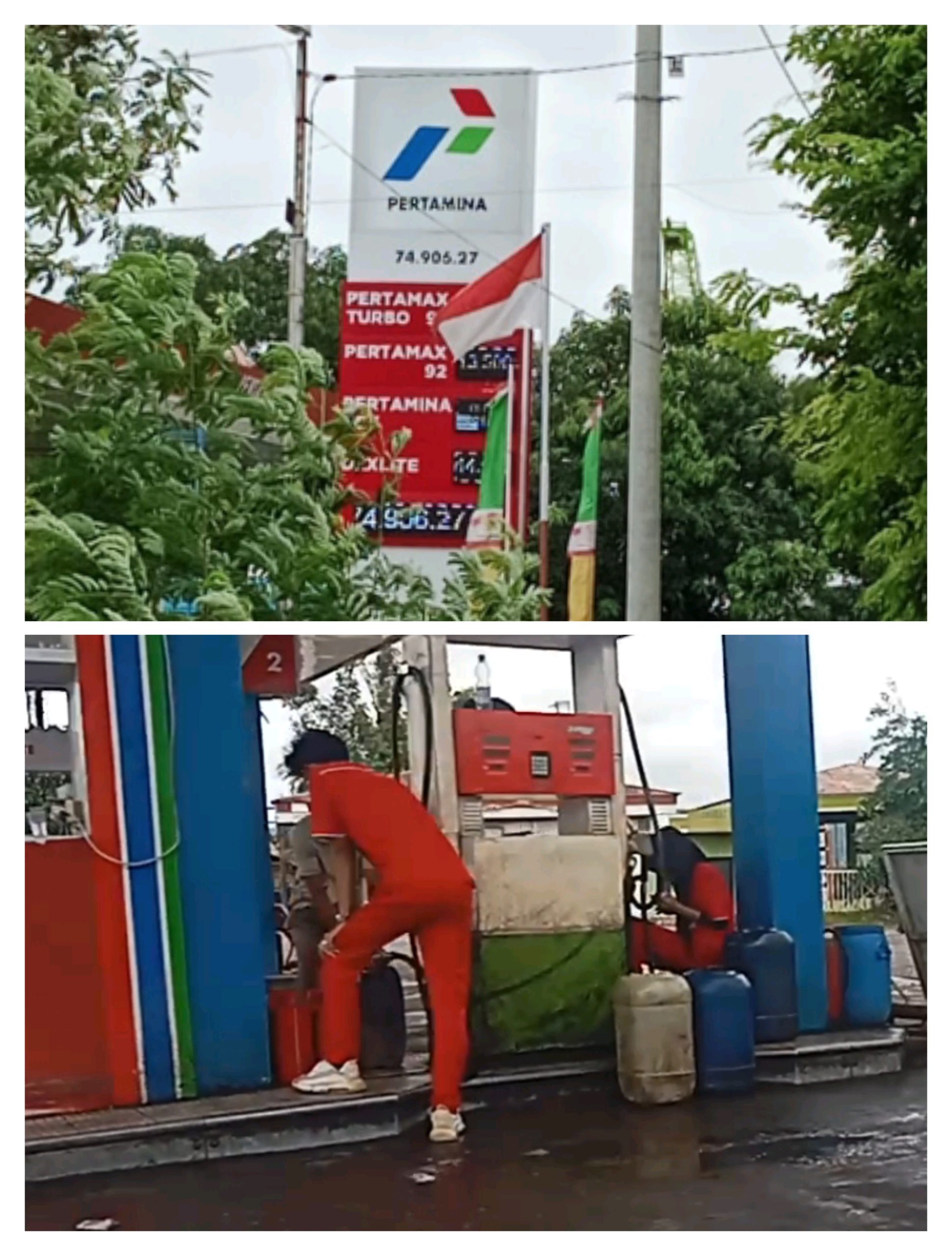 Salah satu Stasiun Pengisian Bahan Bakar Umun (SPBU) di kabupaten Pangkajene dan Kepulauan (Pangkep) terlihat terang-terangan melayani pengisian BBM jenis solar subsidi melalui jerigen.