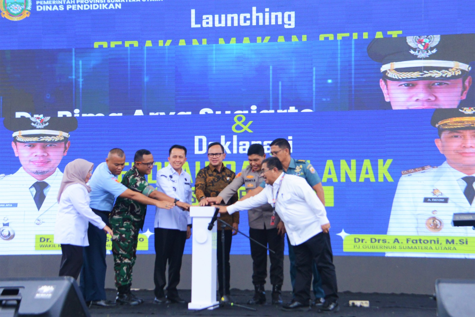 KeizalinNews.Online Belawan — Komandan Pangkalan Utama TNI Angkatan Laut I (Danlantamal) I Brigjen TNI (Mar) Jasiman Purba, S.E., CHRMP., diwakili Aspotmar Danlantamal I Kolonel Marinir Hendra Zarnadi, S.Sos., M.Tr. Opsla., bersama Forum Koordinasi Pimpinan Daerah (Forkopimda) Provinsi Sumatera Utara, menghadiri Launching Gerakan Makan Sehat Bergizi Serentak dan Deklarasi Sekolah Ramah Anak Se-Sumut, yang dipimpin Wakil Menteri Dalam Negeri Republik Indonesia Dr. Bima Arya Sugiarto, bertempat di Lapangan SMA Swasta Dharma Pancasila, Medan, Sumatera Utara, Rabu (11/12/2024).