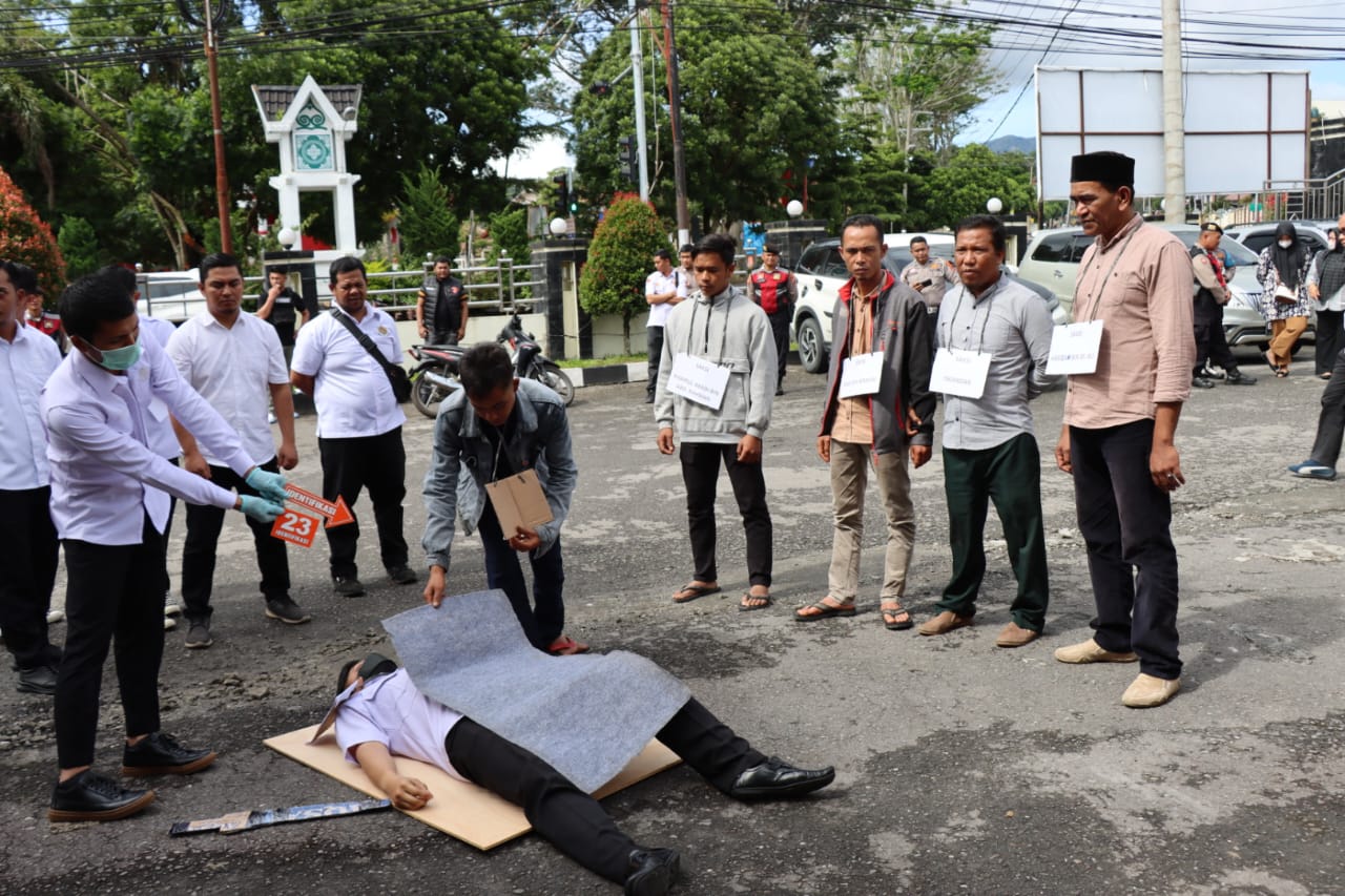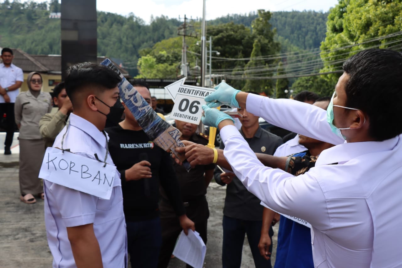 Keizalinnews.Online|Aceh Tengah-: Penyidik Satreskrim Polres Aceh Tengah, Polda Aceh menggelar Rekonstruksi (Reka Adegan) kasus Pembunuhan thdp korban Risdian (50) warga Kampung Gemesin Kecamatan Silih Nara Kabupaten Aceh Tengah.