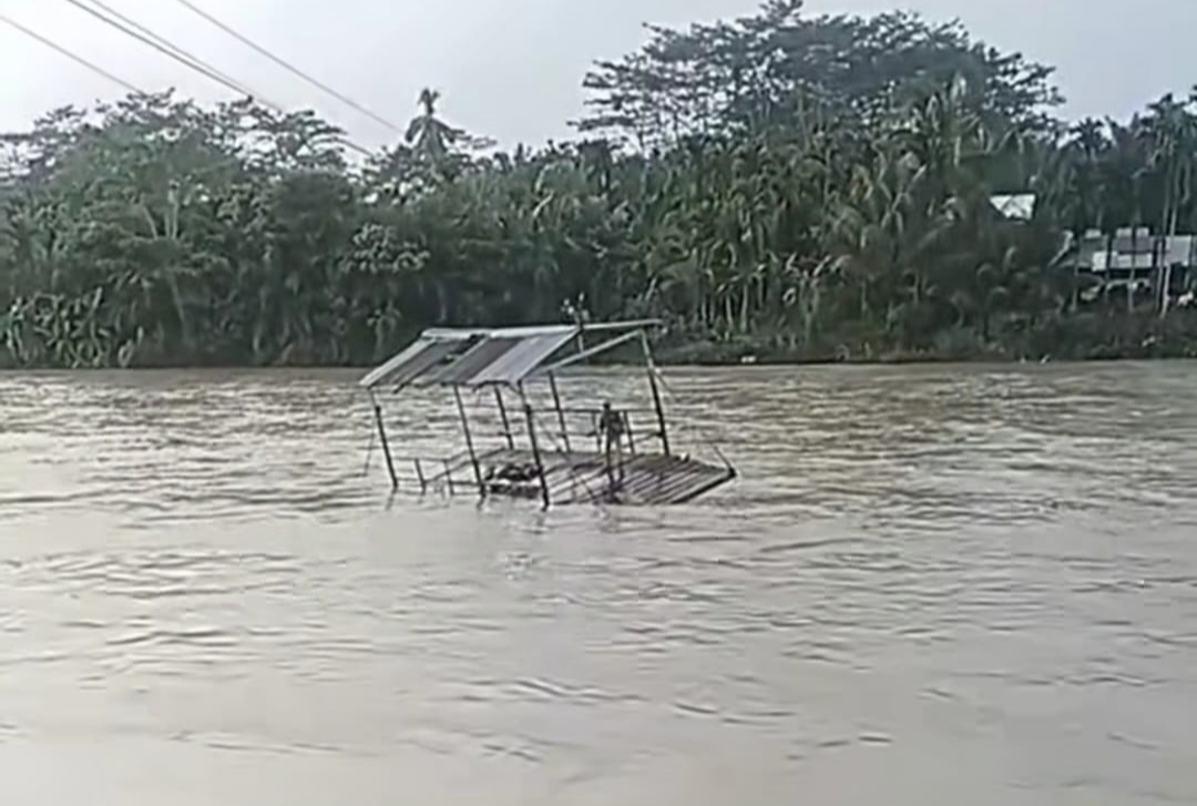 ” Namun saat di tengah sungai, tali seling yang menjadi penopang beban sekaligus pengaman putus. Akibatnya getek terbawa arus dan sempat hilang kendali.