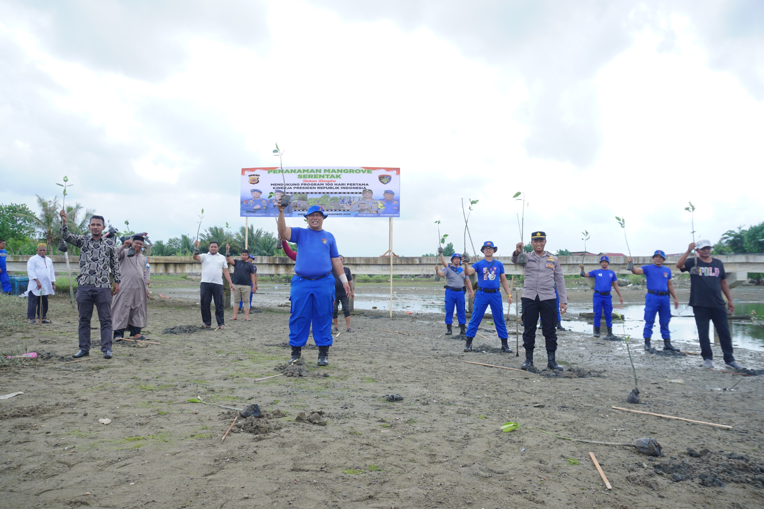 Kapolres Lhokseumawe, AKBP Henki Ismanto, S.I.K, melalui Kasat Polairud, Ipda Edumanihar Siagian, menjelaskan, sebanyak 300 bibit mangrove ditanam dalam kegiatan ini sebagai bagian dari percepatan program strategis nasional ASTA CITA POLDA ACEH.