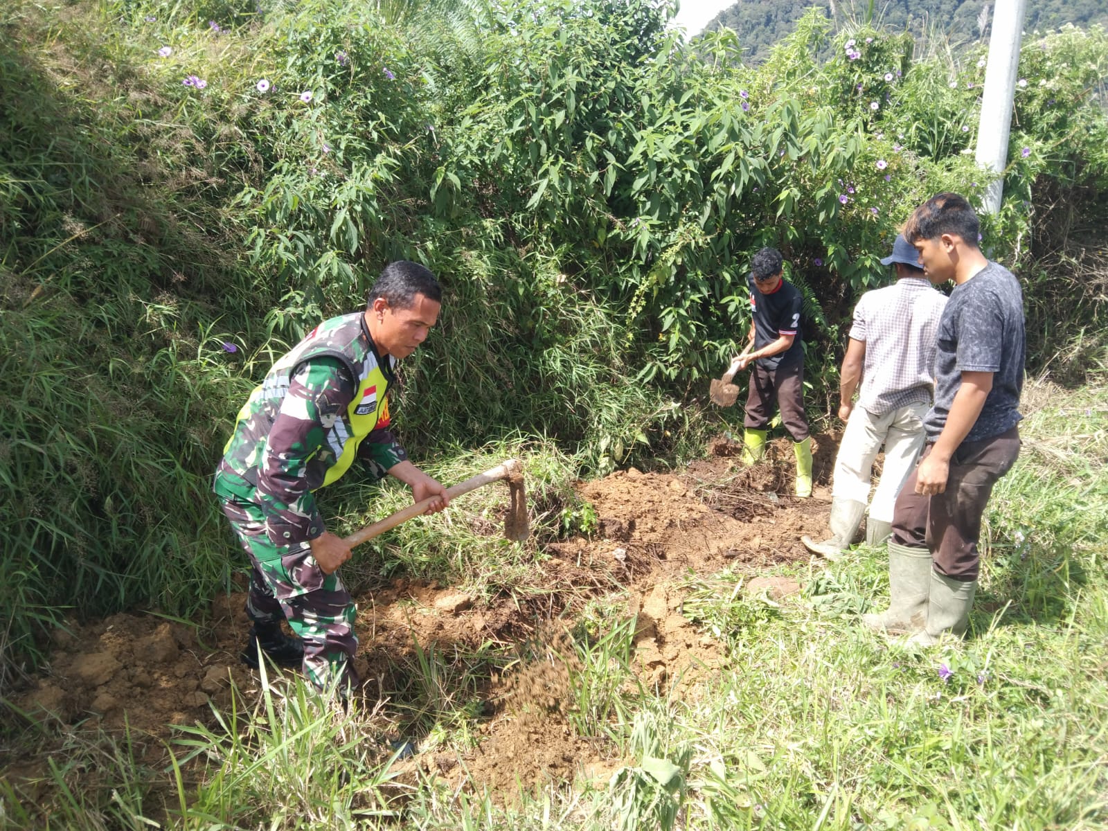 Babinsa bersama warga setempat bergotong royong memperbaiki pipa saluran air bersih. Kegiatan ini dilakukan dengan semangat dan kesadaran bersama untuk meningkatkan kualitas hidup masyarakat. Dengan perbaikan ini, diharapkan ketersediaan air bersih dapat terjamin dan masyarakat dapat menikmati air bersih yang memadai.