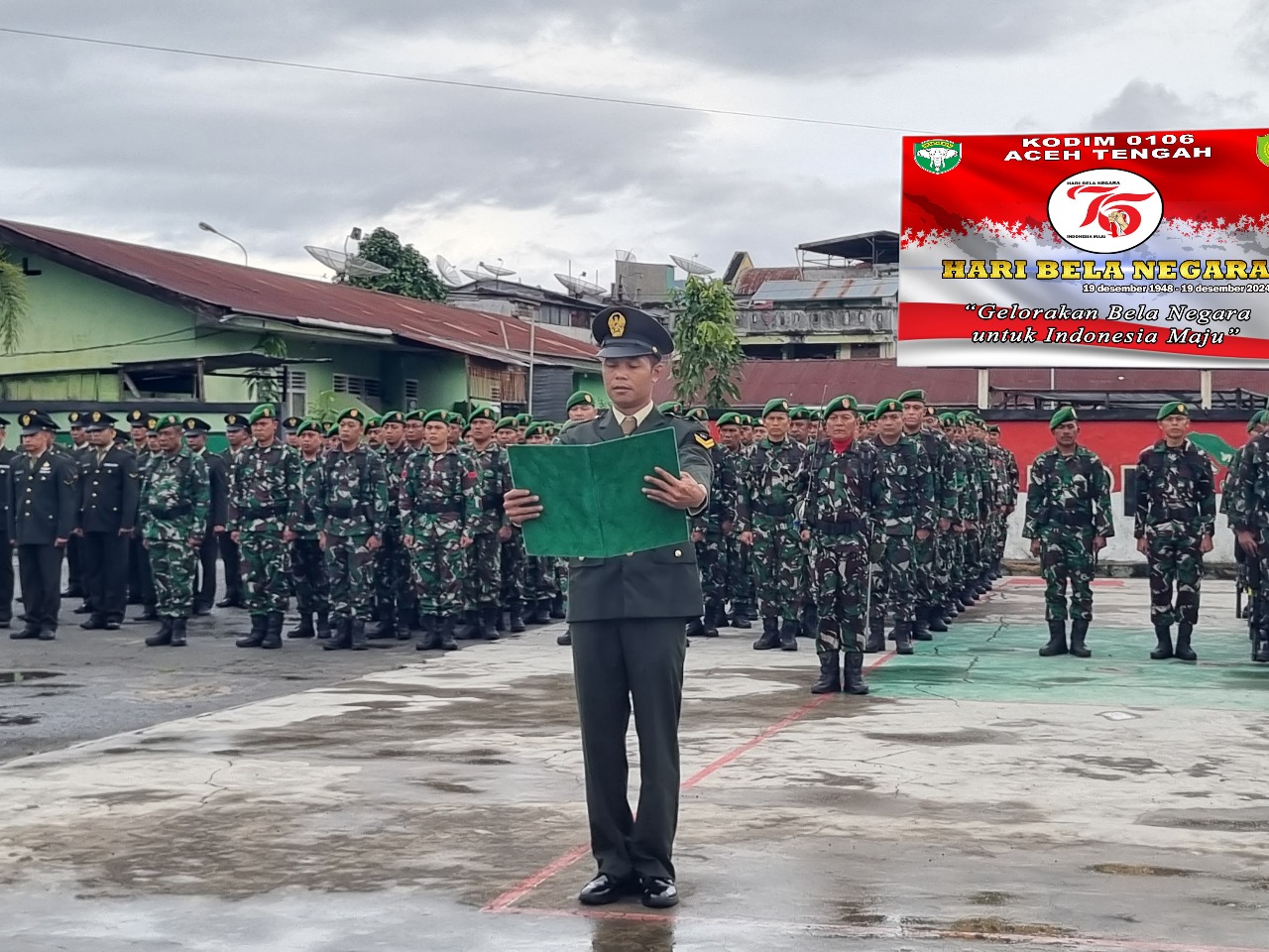 Keizalinnews.Online|Redelong-: Dandim 0106/ Aceh Tengah Letkol Inf Raden Herman Sasmita sebagai inspektur upacara dalam peringatan Hari Bela Negara ke-76. Dengan mengusung tema “Gelorakan Bela Negara untuk Indonesia Maju”, bertempat di lapangan makodim kp bale atu kec, lut tawar Kab, Aceh Tengah.Kamis (19/12/24).