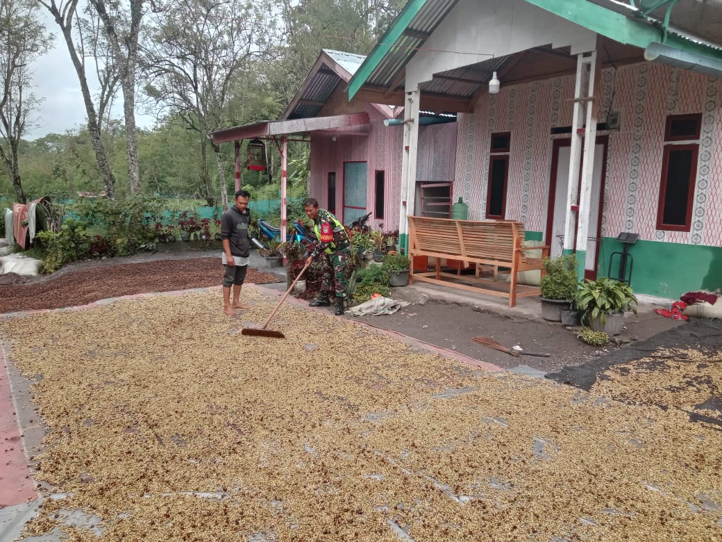 Musim Panen Telah Tiba, Babinsa Bantu Warga Jemur Kopi