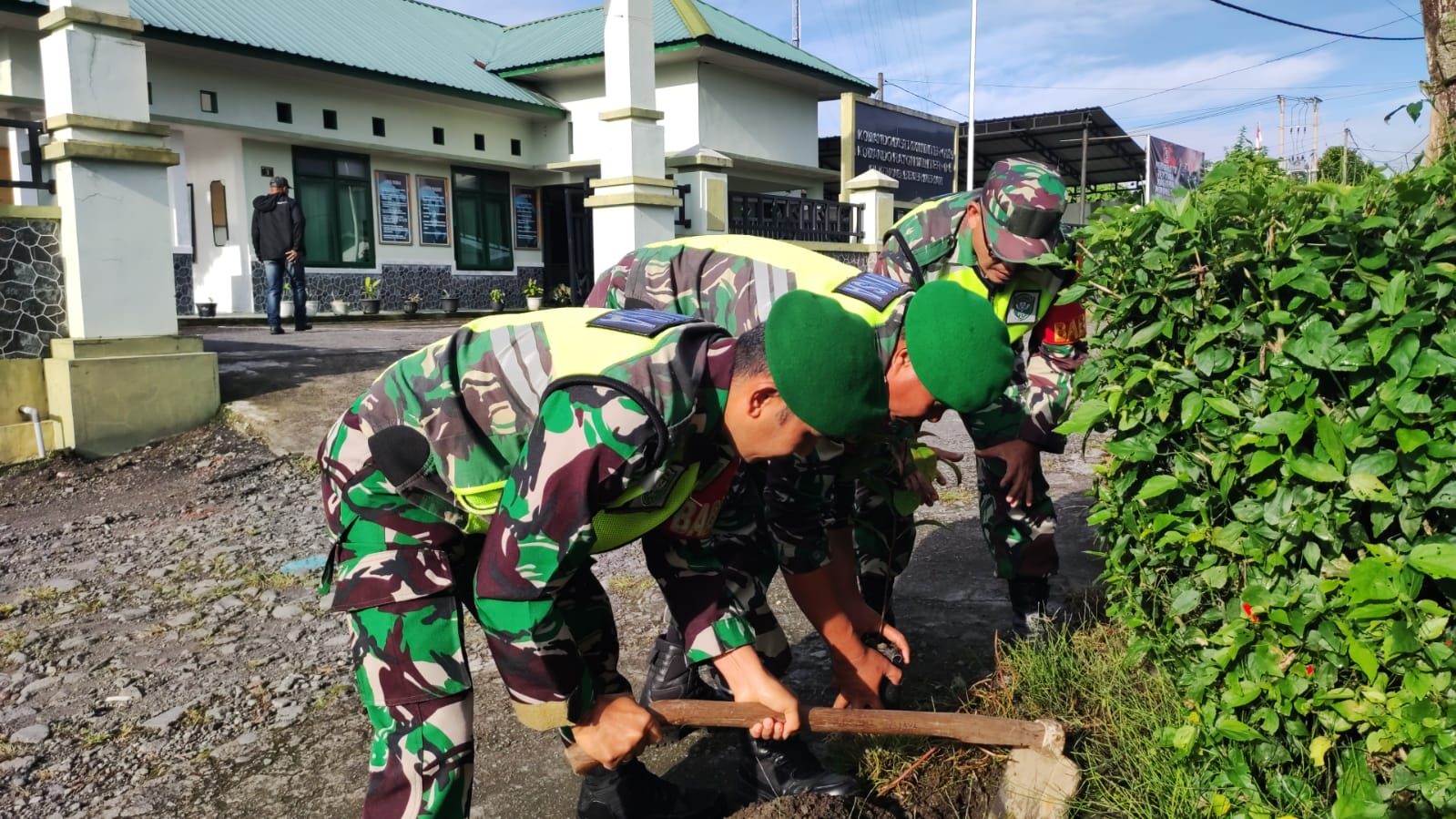 Keizalinnew.Online|Redelong-: Dukung pelestarian lingkungan untuk menjaga keseimbangan ekosistem, Koramil 06/Bukit melaksanakan kegiatan penanaman pohon di Makoramil 06/Bukit Desa Paya Gajah, Kecamatan Bukit, Kabupaten Bener Meriah, Selasa (24/12/2024).
