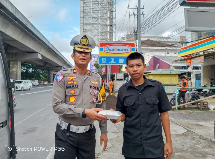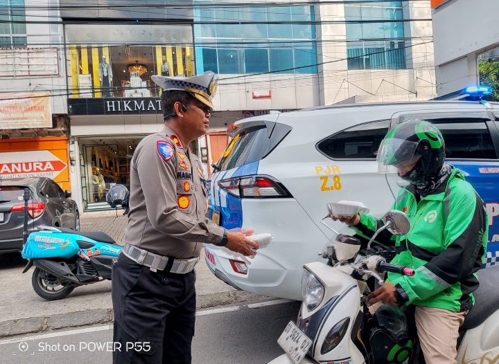 Kegiatan sosial dalam bentuk berbagi makanan (nasi dos) ini, dipimpin oleh Kasat PJR Ditlantas Polda Sulsel, Kompol Mamat Rahmat.