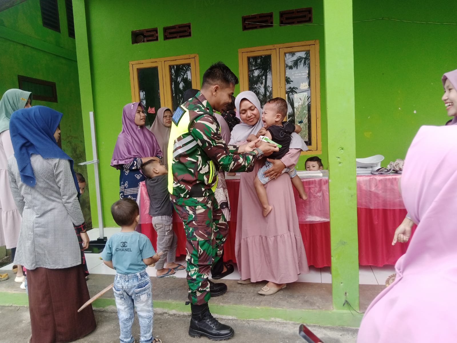 Keizalinnews.Online|Redelong-: Babinsa Koramil 04/PRG, Kodim 0119/BM Serda Ardiansyah melaksanakan pendampingan pelaksanaan Posyandu di Desa 58, Kecamatan Pintu Rime Gayo, Kabupaten Bener Meriah, Jum’at (03/01/2025).