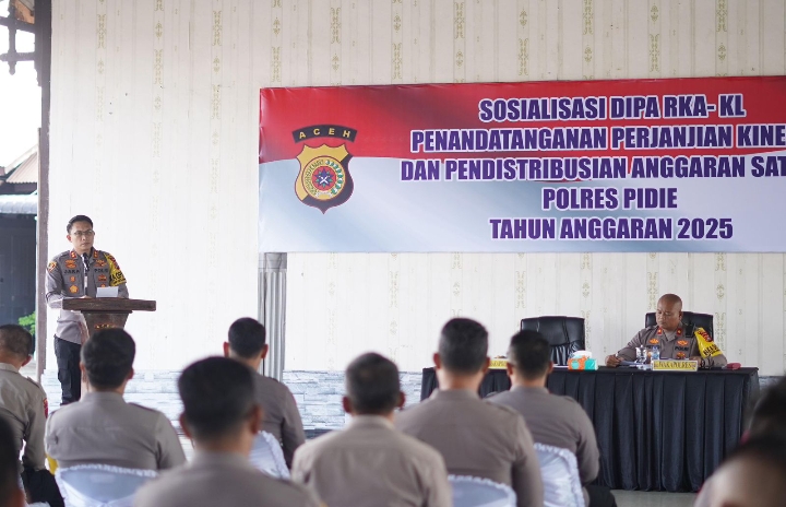 Dalam sambutannya Kapolres Pidie AKBP Jaka Mulyana, SIK, MIK menekankan bahwa pentingnya pemahaman mendalam mengenai DIPA dan RKA-KL sebagai landasan pelaksanaan tugas kepolisian di tahun 2025.