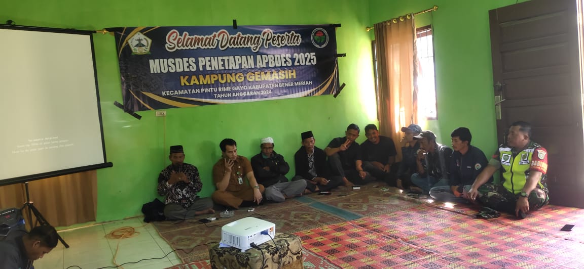 Keizalinnews.Online|Redelong-: Babinsa Koramil 04/PRG, Kodim 0119/BM Koptu Suparjo menghadiri Musyawarah Desa (MUSDES) penetapan Anggaran Pendapatan dan Belanja Desa (APBDES) Tahun Anggaran 2025 yang akan menjadi dasar pelaksanaan pembangunan di Desa Gemasih, Kecamatan Pintu Rime Gayo, Kabupaten Bener Meriah, Kamis (16/01/2025).
