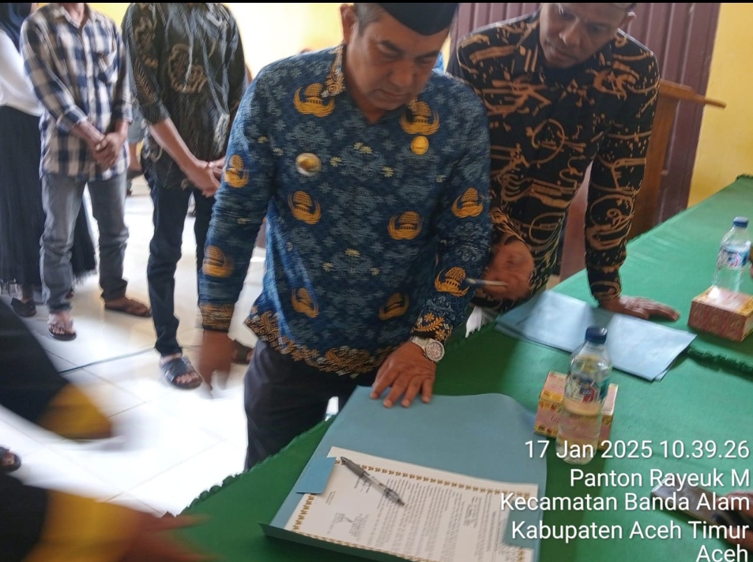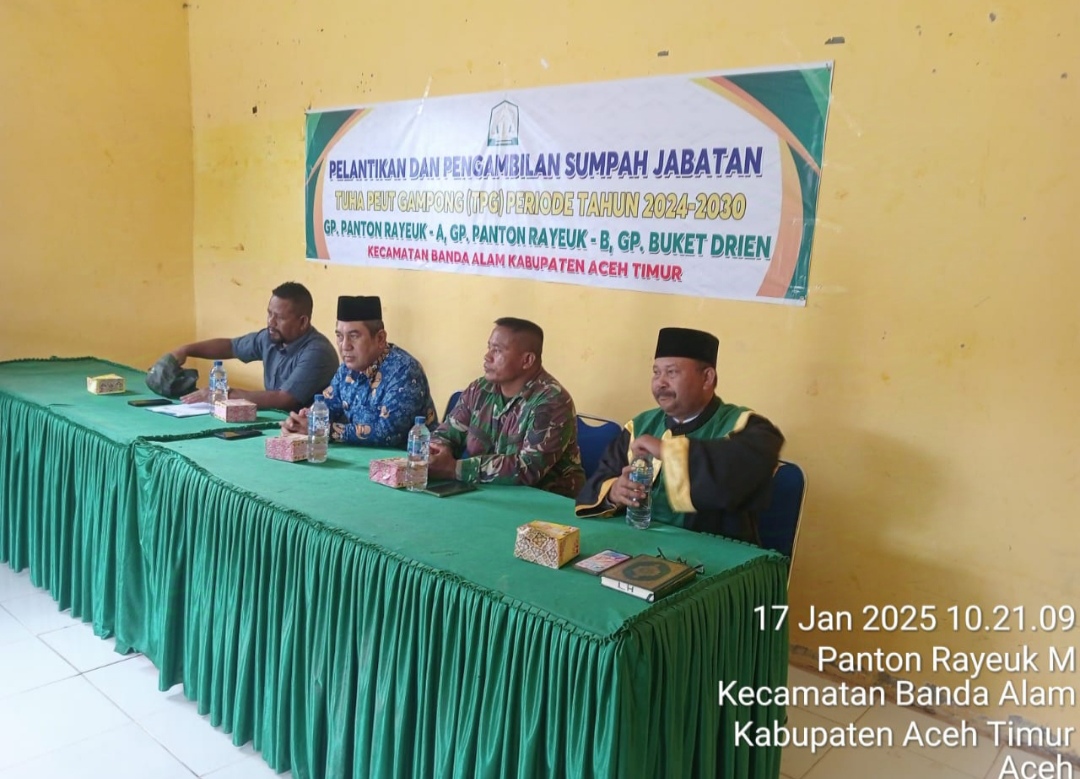 Keizalinnews online Aceh Timur Nanggroe Aceh Darussalam NAD – Pelantikan dan Pengembilan Sumpah Jabatan Tuha Peut Gampong (TPG) , Tiga Gampong yang ada di kecamatan Banda Alam Kabupaten Aceh Timur Jum’at ,Tgl (17/1/2025)