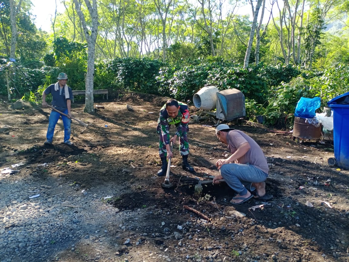 Kegiatan ini merupakan wujud nyata sinergi antara TNI dan masyarakat dalam menciptakan lingkungan yang bersih dan rapi. Dengan sigap, Serda Abdul gofur menggunakan alat sederhana untuk meratakan tanah, memastikan area di depan rumah tersebut menjadi lebih nyaman dan indah di pandang.