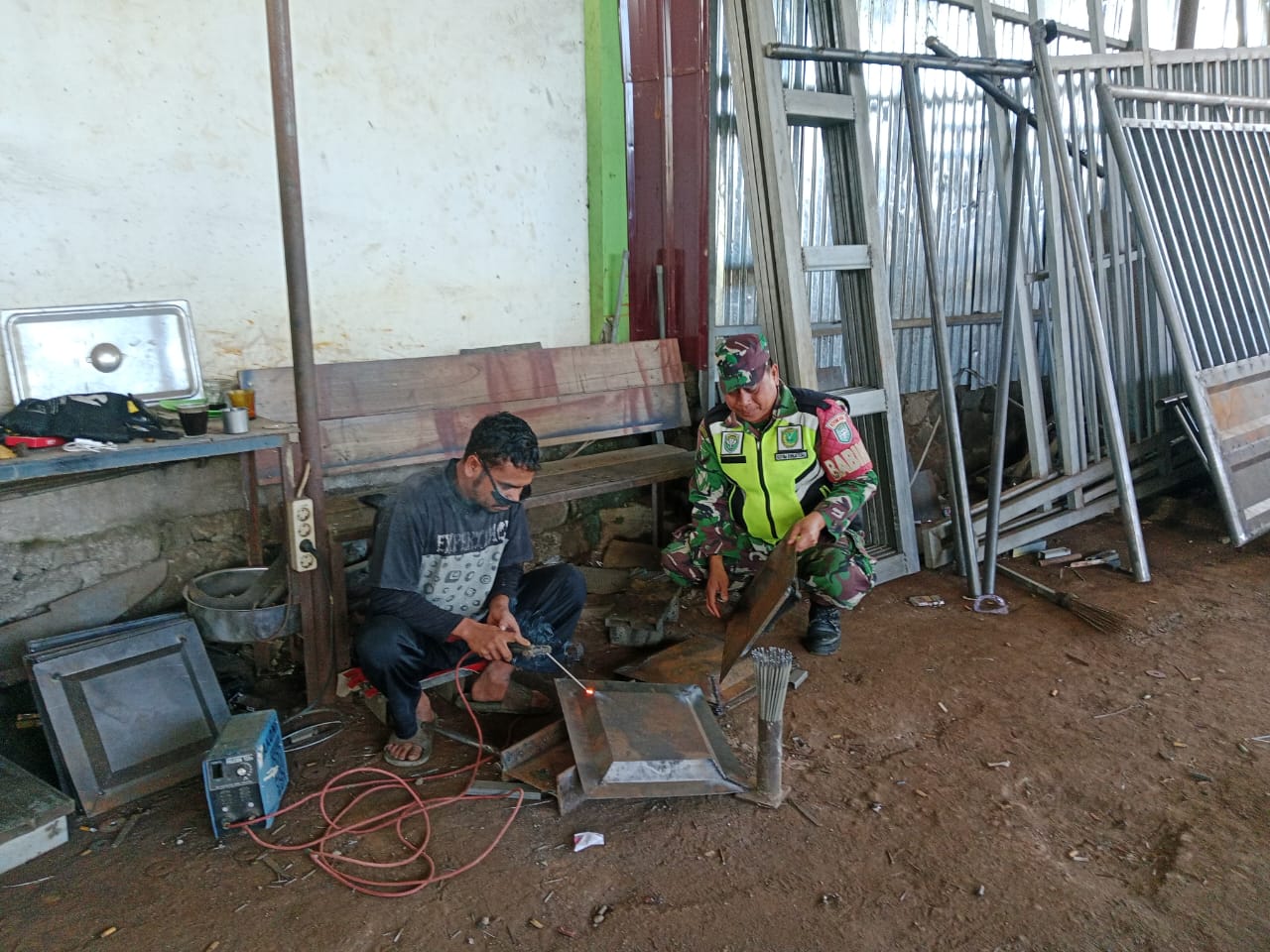 Serda Adi Rahmanto melaksanakan Komsos bersama pengerajin Las Besi yang sedang bekerja, memberi dorongan dan ide-ide yang mungkin bermanfaat guna berkembangnya Usaha yang di tekuni olehnya.