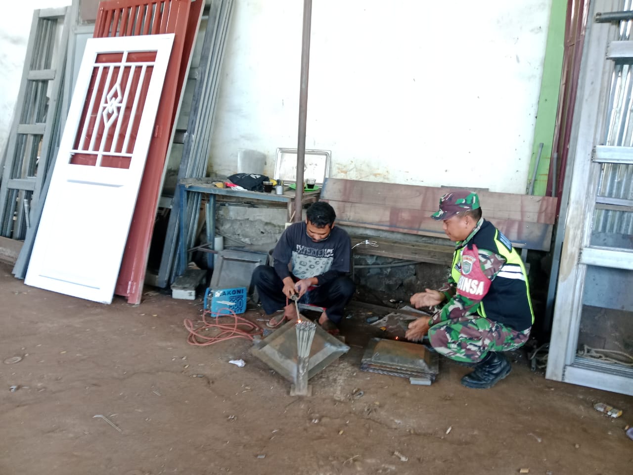 Serda Adi Rahmanto melaksanakan Komsos bersama pengerajin Las Besi yang sedang bekerja, memberi dorongan dan ide-ide yang mungkin bermanfaat guna berkembangnya Usaha yang di tekuni olehnya.