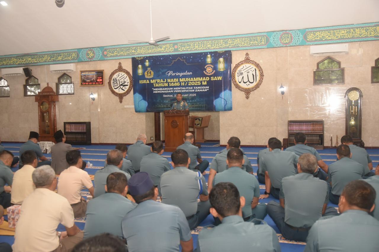 KeizalinNews.Online Jakarta — Komandan Seskoal (Danseskoal) Laksamana Muda TNI Fauzi, S.E., M.M., M.Tr. Opsla., M.Han. menghadiri peringatan Isra Mikraj Nabi Muhammad SAW. tahun 1446 H/ 2025 M. Kegiatan ini dilaksanakan di Masjid Nurul Iman, Seskoal, Cipulir, Kebayoran Lama, Jakarta Selatan. Senin, (10/02/2025).