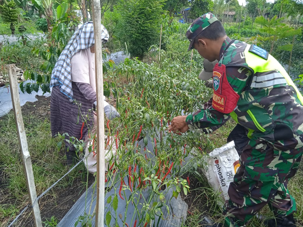 Babinsa Koramil 02/Wps Bantu Petani Panen Cabe merah, bertempat di Desa