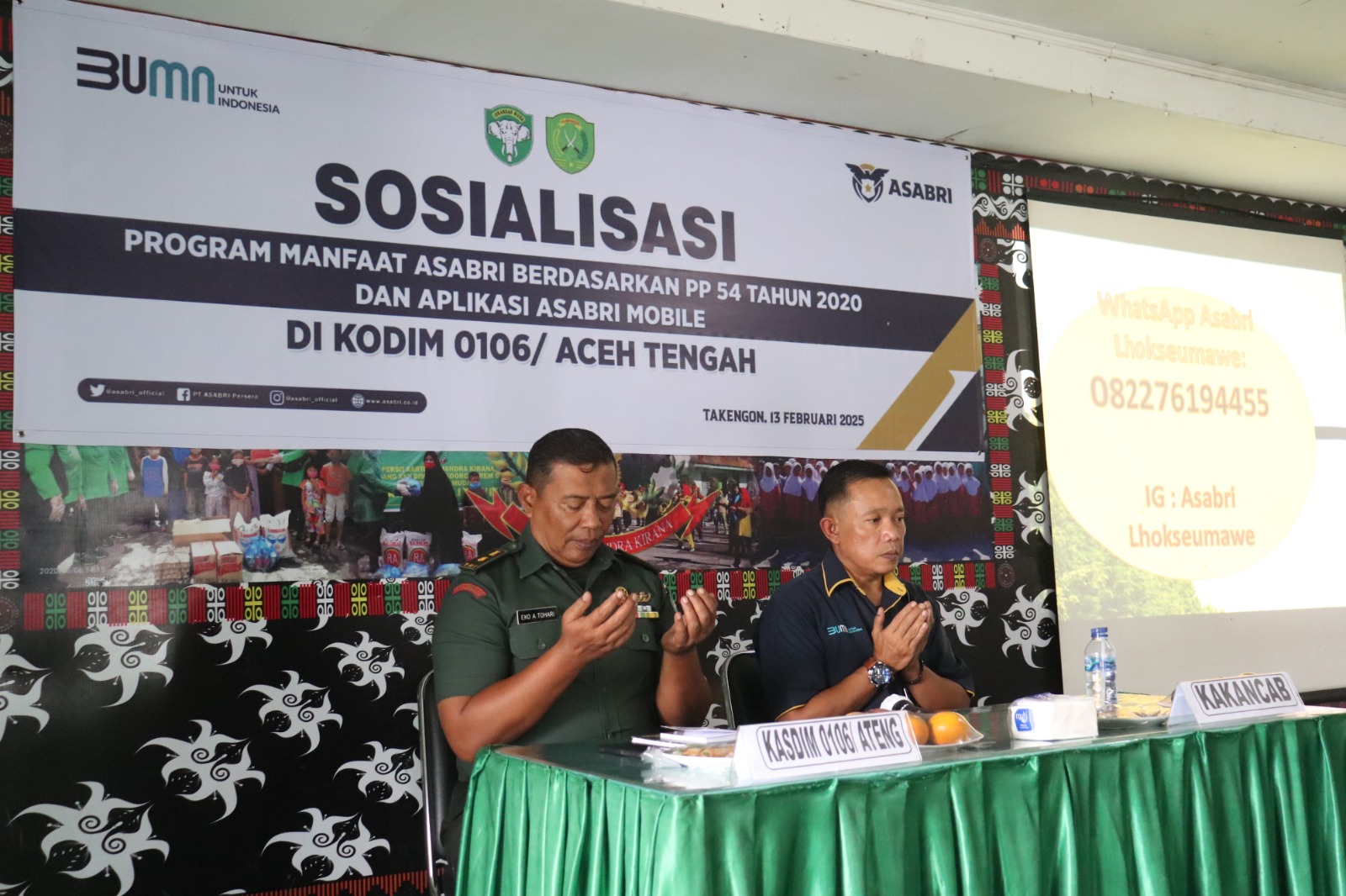 Takengon- PT ASABRI Cabang (Persero) lhokseumawe melaksanakan kegiatan sosialisasi program dan manfaat jaminan manfaat sesuai dengan Peraturan Pemerintah Nomor 102 Tahun 2015 telah diubah dalam Peraturan Pemerintah Nomor 54 Tahun 2020 kepada anggota Kodim 0106/Ateng, polres aceh tengah dan pengurus Persit KCK Cabang XXII di alua persit jalan lut tawar kec lut tawar Kab, Aceh Tengah (13/02/2025)