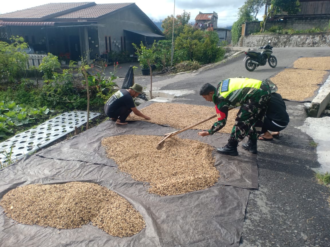 Serda Arif Budiman mengatakan, sebagai aparat kewilayahan yakni Babinsa, saya ingin memastikan warga binaan bisa menjalankan aktivitas pertanian mereka dengan maksimal, termasuk dalam penjemuran kopi ini. Kami juga memberikan dukungan agar hasil pertanian mereka bisa dipasarkan dengan harga yang baik.