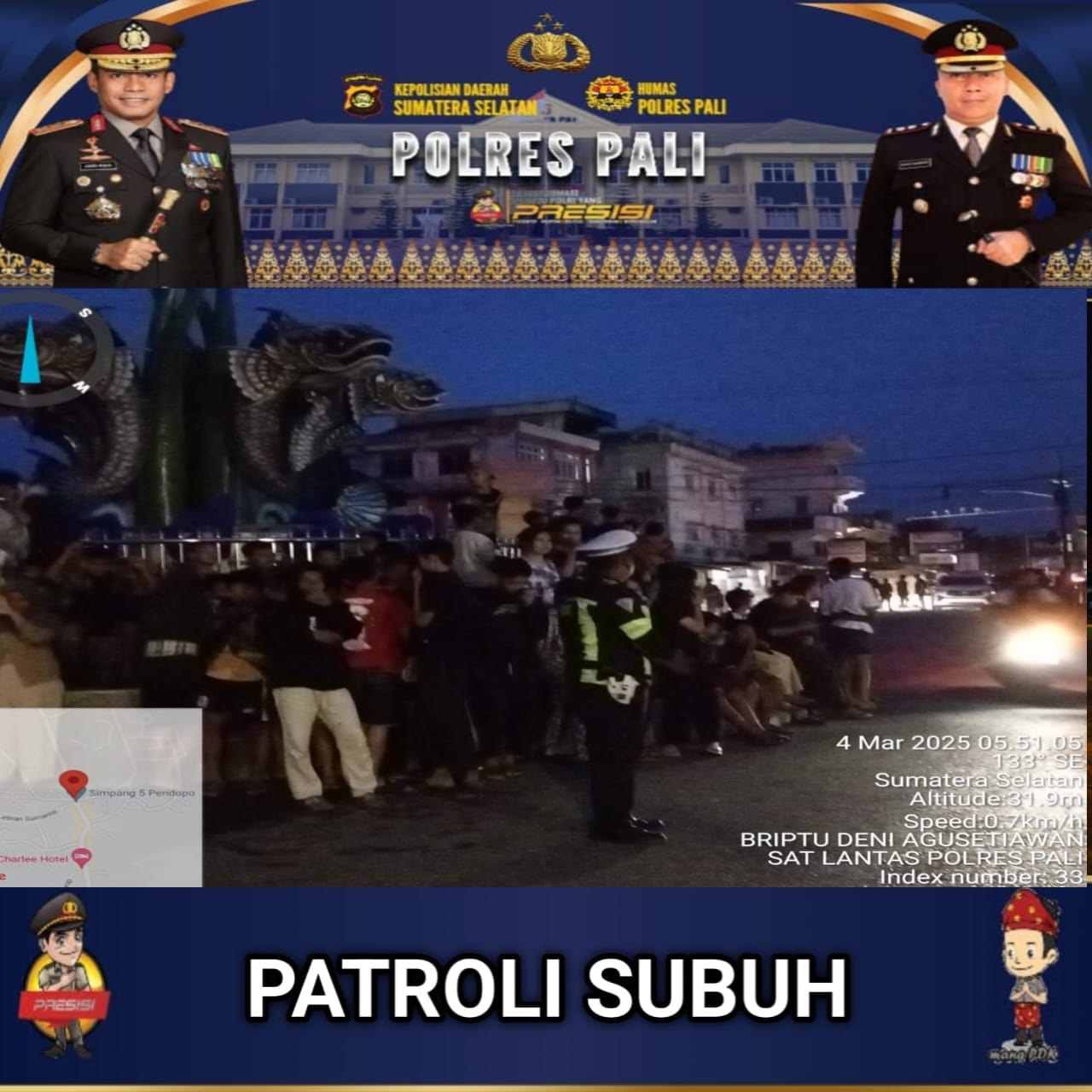 Patroli Subuh ini merupakan bagian dari komitmen Satlantas Polres PALI dalam menciptakan situasi lalu lintas yang kondusif serta mendukung keselamatan pengguna jalan.