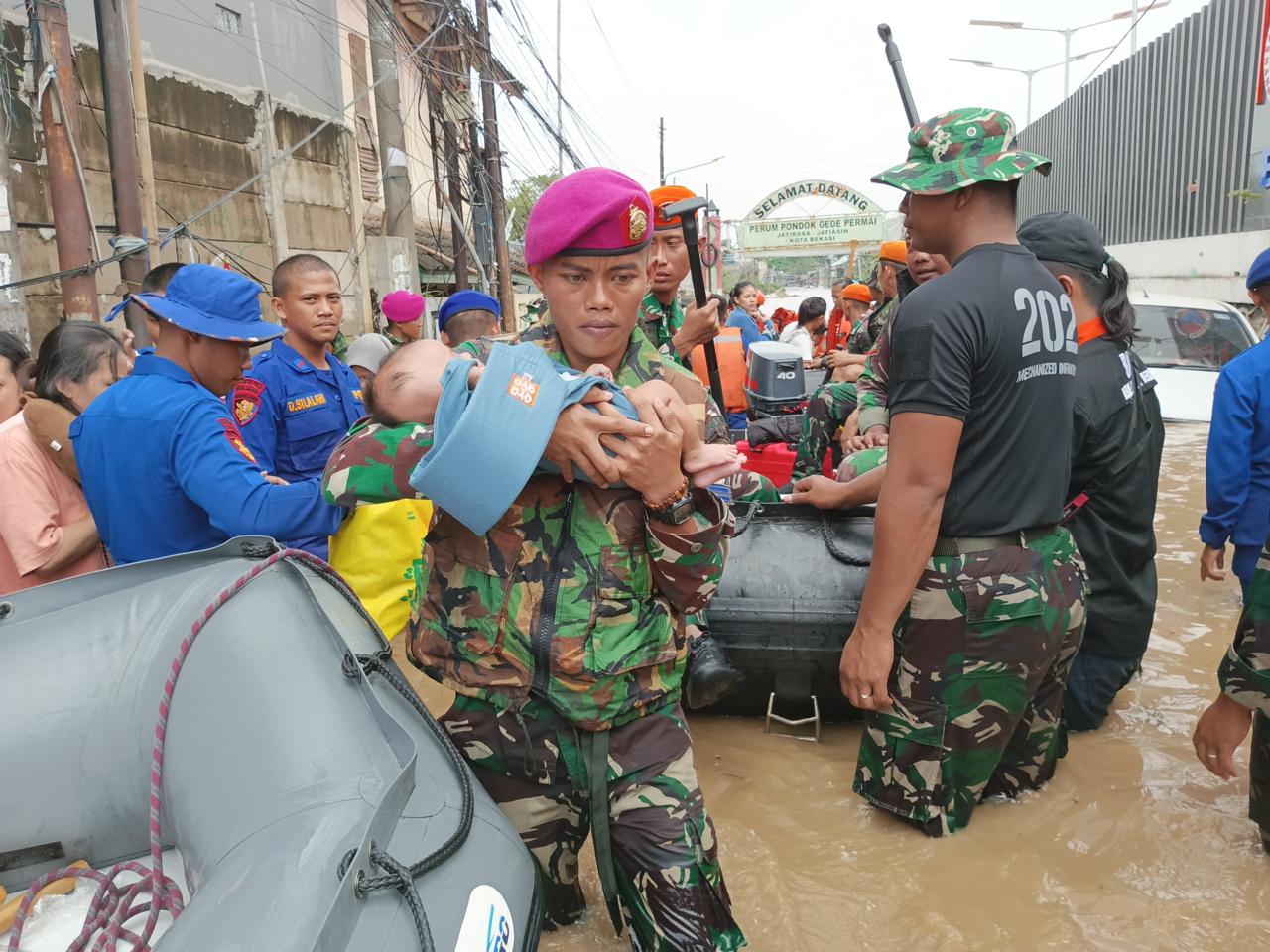 Ratusan prajurit gabungan dari Pasmar 1 dan Yonmarhanlan III Jakarta dikerahkan ke beberapa titik wilayah terdampak banjir yaitu di Perumahan Pondok Gede Permai Bekasi, Kebon Pala Jakarta Timur, Gereja GPIB Menara Kasih Bekasi, Perumahan Villa Nusa Indah Bekasi, hingga Pekayon Kecamatan Bekasi Barat dengan ketinggian air yang bervariasi dari 0,5 meter hingga mencapai 2 meter.