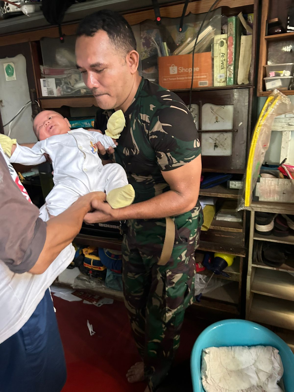 KeizalinNwws.Online Jakarta Timur — Upaya selamatkan Balita korban banjir, Babinsa Serda Messak melakukan aksi penyelamatan evakuasi bayi dilokasi banjir RW.07 Kelurahan Bidara Cina, Kecamatan Jatinegara, Selasa (04/03/25).