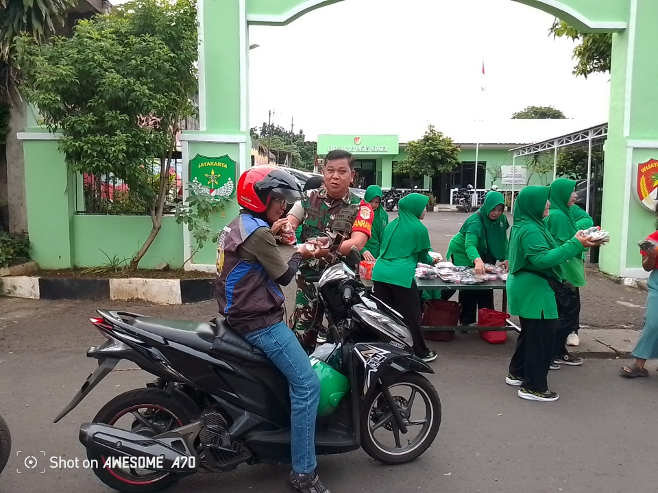 Danramil 03/Pasar Minggu Mayor Kav Sugiyanto dengan para Babinsa dan didampingi ketua Persit KCK ranting 4 Cab XVIII Koorcab Rem 051/Wkt secara bergantian memberikan takjil kepada masyarakat yang melintas. Ucapan terima kasih dari masyarakat menambah semangat untuk terus berbagi rizki di bulan suci.