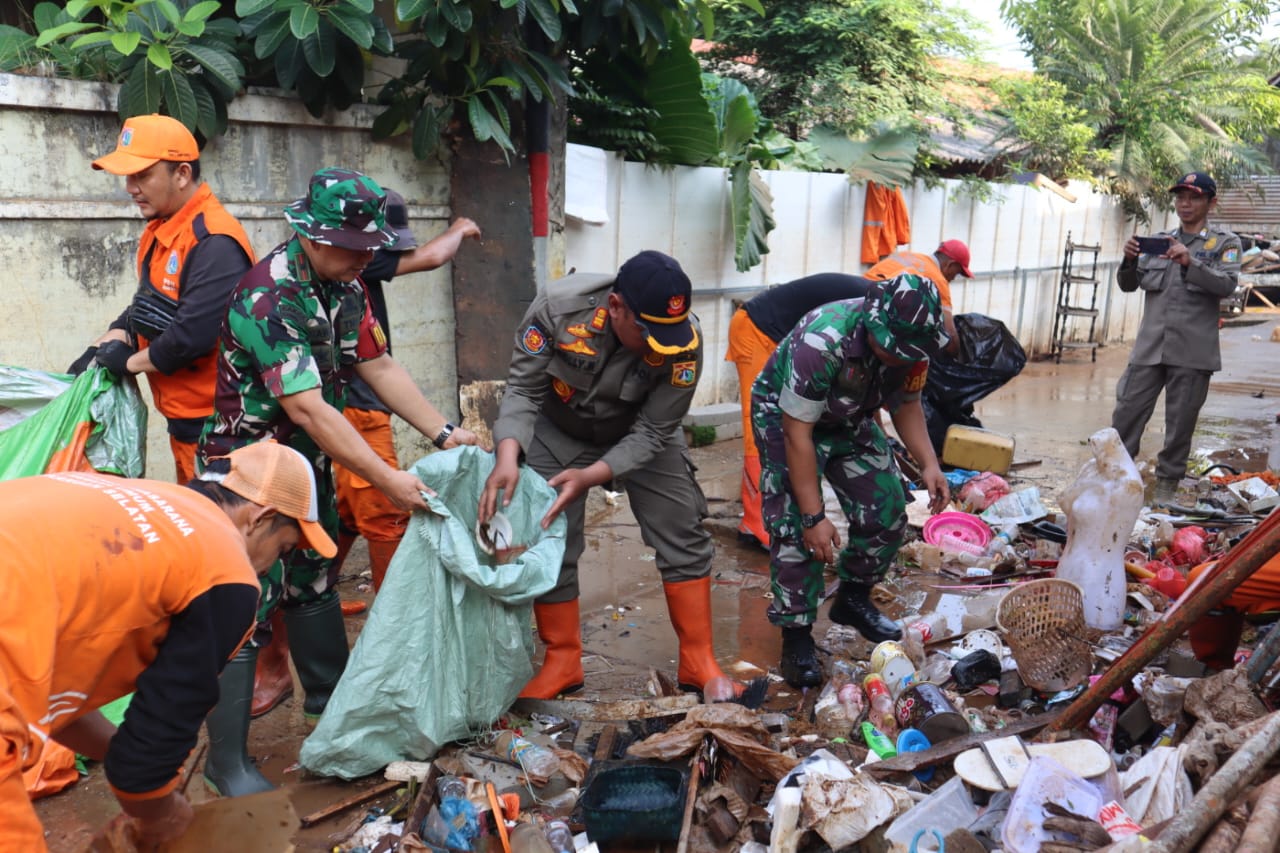 Danramil 04/Kebayoran Lama Mayor Arm Nawang mengatakan, kegiatan kerja bakti ini guna membantu masyarakat terdampak banjir.