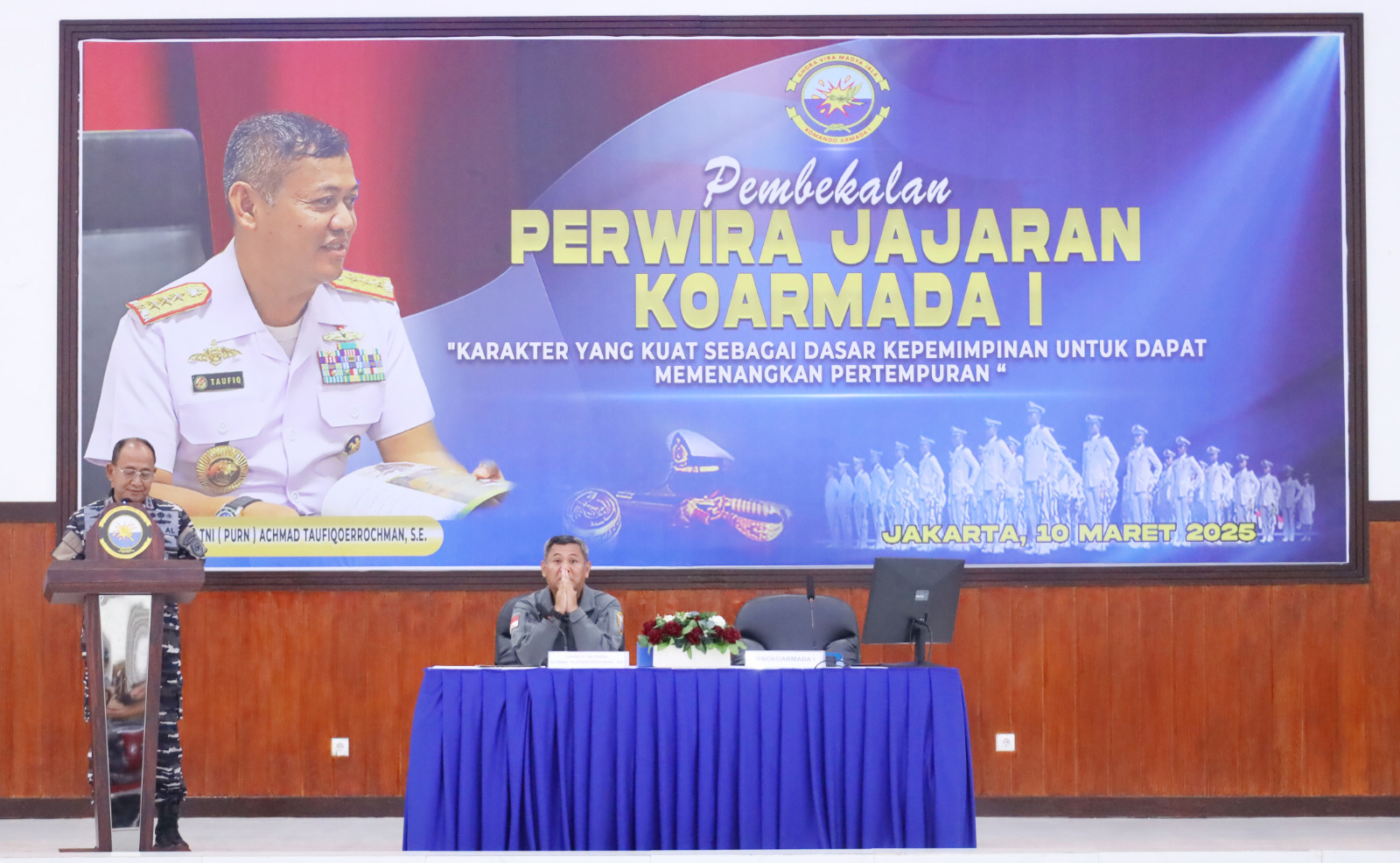 KeizalinNews.Online Jakarta — Komandan Pangkalan Utama TNI Angkatan Laut (Danlantamal) III Jakarta Brigjen TNI (Mar) Harry Indarto, S.E., M.M. menghadiri pembekalan Perwira jajaran Komando Armada (Koarmada) I dengan tema “Karakter yang Kuat Sebagai Dasar Kepemimpinan untuk Dapat Memenangkan Pertempuran”, dipimpin Pangkoarmada I Laksda TNI Dr. Yoos Suryono Hadi, M.Tr.(Han)., M.Tr.Opsla., CHRMP, dengan pemateri Laksdya TNI (Purn) Achmad Taufiqoerrochman, S.E., bertempat di gedung Canopus Kolat Koarmada I, Kodamar, Jakarta Utara, Senin (10/03/2025).