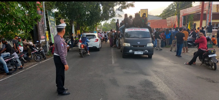 Terlihat dalam kegiatan tersebut personel Satlantas Polres Bone dipimpin Kasat Lantas AKP H Musmulyadi terlihat bekerja dengan sigap dalam mengatur arus lalu lintas dengan memberikan arahan kepada pengendara.