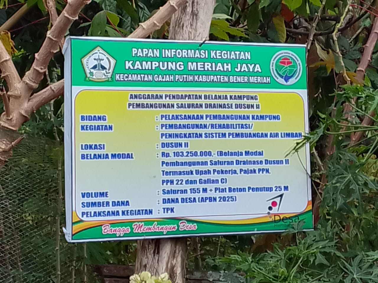 Pemerintah Kampung Meriah Jaya berharap pembangunan ini dapat memberikan dampak positif bagi masyarakat dan meningkatkan kesejahteraan warga.”-M,s